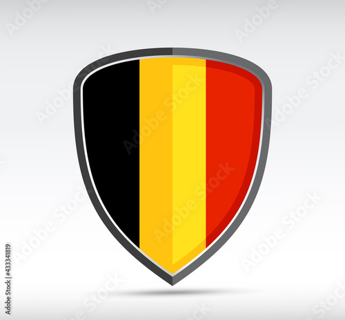 © Iryna, Fototapeta premium Shield icon with state flag of Belgium