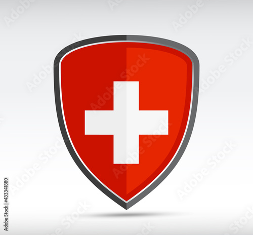 © Iryna, Obraz premium Shield icon with state flag of Switzerland