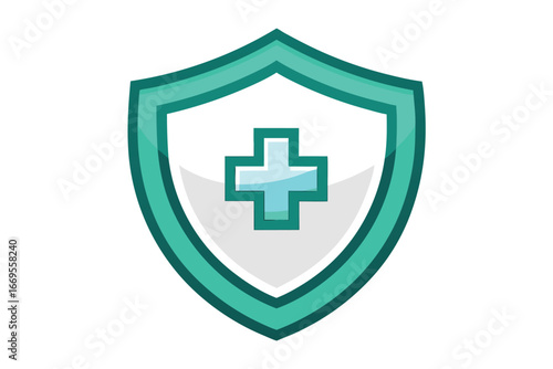 © Bably, Obraz premium Shield Icon with Teal Border and Medical Cross on White Background