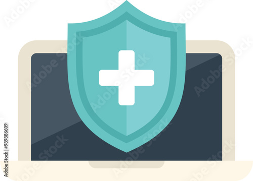 Fototapeta premium Shield is protecting a laptop, showing the concept of antivirus and digital...