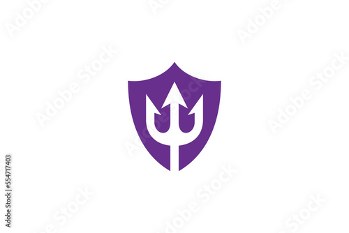 © Dina, Fototapeta premium Shield logo with trident shape in purple color flat design