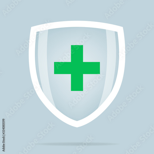 © tesphoto, Obraz premium Shield with cross. Health protection. Vector illustration design. Safety life.