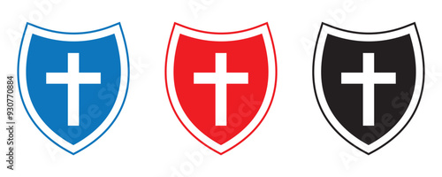 © ISHWARAN, Obraz premium Shield with cross icon set