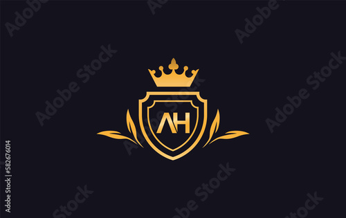 Fototapeta premium Shield with crown icon monogram symbol letter AH
