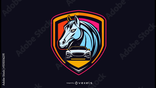 © Cyberpunk, Obraz premium shield with horse