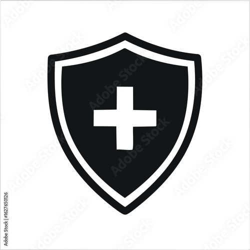 © Asad, Fototapeta premium Shield with plus icon silhouette,. Medical sign
