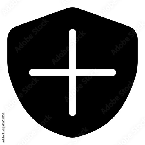 Obraz premium Shield with plus sign icon for security, privacy and health protection