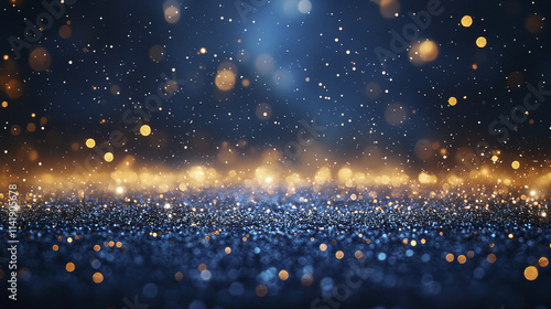 Obraz premium Shimmering abstract background with golden and blue bokeh lights