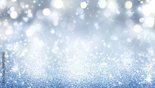 Fototapeta premium shimmering blue and silver glitter background with sparkling bokeh lights...