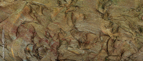 © Lazartivan, Naklejka premium Shimmering Bronze Texture of Paint Strokes with Abstract Patterns and Multicolored Shades