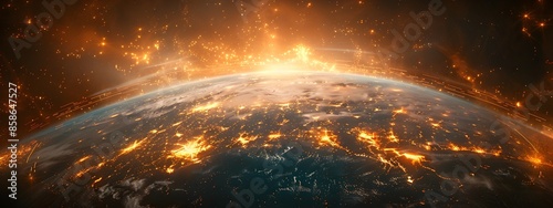 © Bos Amico, Obraz premium Shimmering Digital Planet Enveloped in Captivating Information Streams