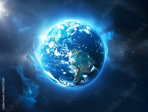 Obraz premium Shimmering Energy Shield Protecting Planet Earth in the Cosmos