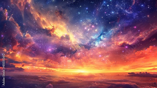 Fototapeta premium Shimmering galaxies and nebulae in a cosmic Day of the Dead sky background
