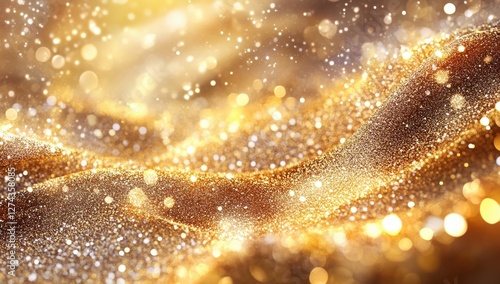 Obraz premium Shimmering Gold Glitter Particles on Smooth Surface Creating Dreamy Background for Celebrations and Festivities in Sparkling Light Effects