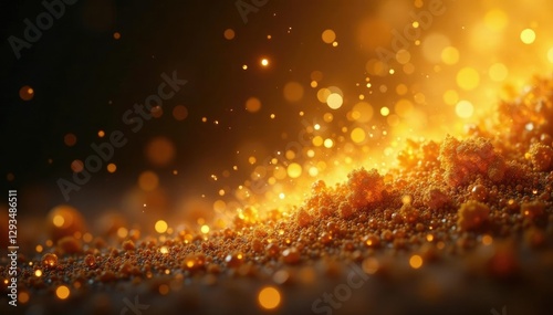 © Yasotaro, Fototapeta premium Shimmering golden dust particles suspended in air, particles, golden shine texture, shimmer