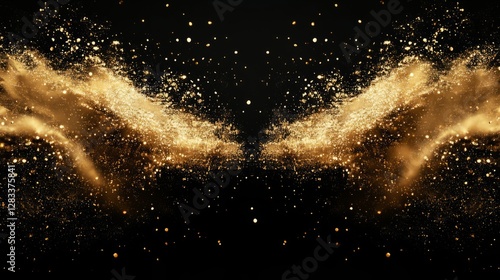 © Aisha, Fototapeta premium Shimmering golden particles exploding symmetrically, intricate textures, black background
