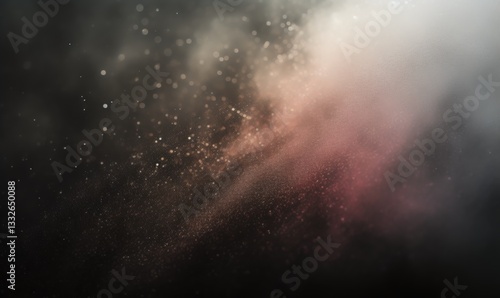 © Chaos, Fototapeta premium Shimmering grainy gradient texture with a smooth color transition from pink gray and white on a black smoky background, creating a soft background