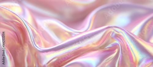 Fototapeta premium Shimmering pink fabric folds with iridescence, soft focus texture background