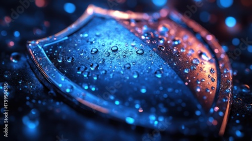 © MBRAMO, Fototapeta premium Shimmering Shield with Water Droplets