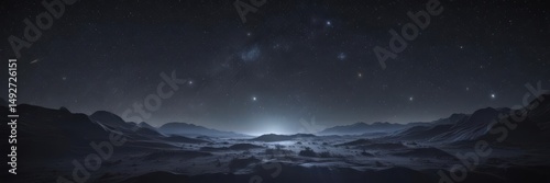 Fototapeta premium Shimmering stars blanket inky blackness; distant nebulae glow faintly , deep...