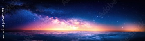 © taweesak, Fototapeta premium Shimmering stars breaking through a thin veil of clouds, soft focus, long exposure capturing the movement, wideangle lens, low light glow