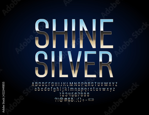 Obraz premium Shine Silver Font. Vector Set of Elegant Metallic Alphabet Letters, Numbers and Punctuation Symbols.