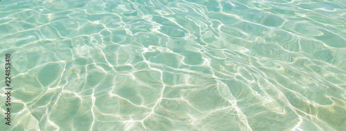 Fototapeta premium Shining blue water ripple for background. Banner size with copy space.
