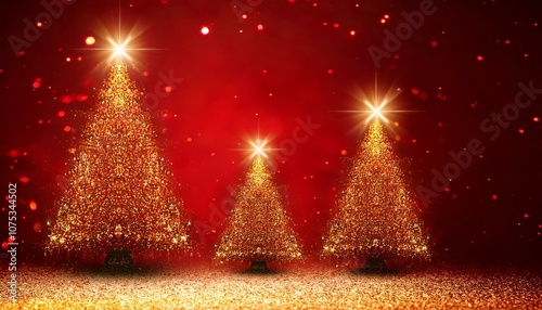 Naklejka premium Shining Christmas Tree - Golden Glitter sparkling In The Red Background