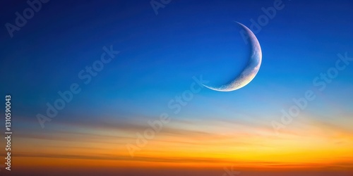 © Nasnunt, Fototapeta premium Shining crescent moon in a clear blue sky at sunset , sky landscape