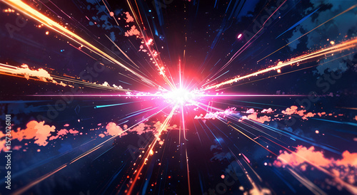 © Emma Lin, Obraz premium Shining light in the sky surrounded by clouds, background material