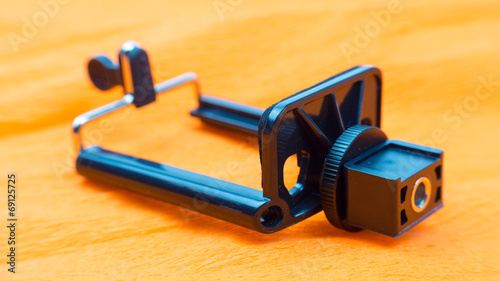 © nazlins, Fototapeta premium Shining Metal Mobile Smart Phone Landcsape Mount Holder Isolated