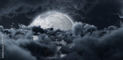 Obraz premium Shining moon hide by dark grey clouds in the sky