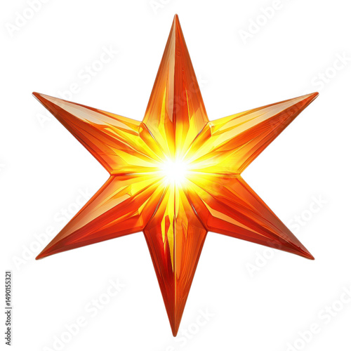 Obraz premium Shining orange eight-pointed star with a radiant light at the center.