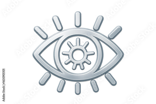 © Michael, Obraz premium Shining silver eye with beams of light, on a clear background, perfect for projects about sight, perception, and consciousness
