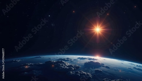 Fototapeta premium Shining star against a dark and velvety black background, spacedeck, nightsky