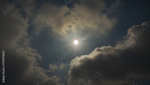 Obraz premium Shining sun dominating high-altitude sky, with cumulus clouds showing...
