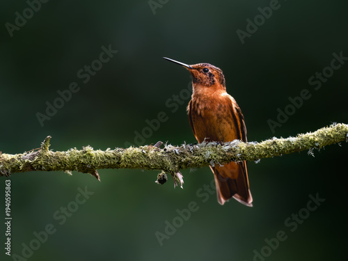 © FotoRequest, Obraz premium Shining Sunbeam Hummingbird Perched on Mossy Branch in Highlands