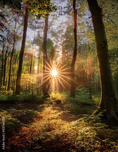 Obraz premium shining through forest canopy, golden hour vibes”