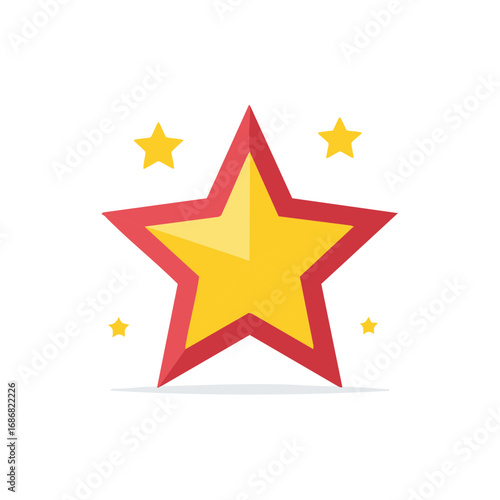 © FryArt, Obraz premium Shining yellow five pointed star with bold red outline and small glowing stars