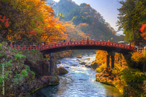 Naklejka premium Shinkyo Bridge during autumn in Nikko, Tochigi, Japan