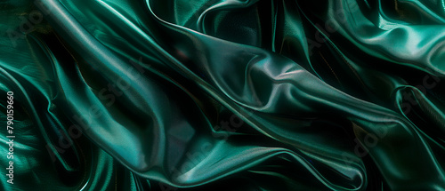 Obraz premium Shiny and silky emerald green fabric cloth for background.