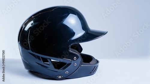 Fototapeta premium Shiny black baseball helmet resting on a white background