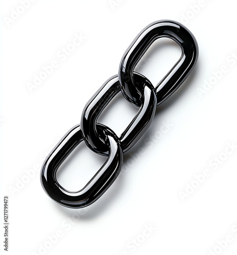 © Sunny Good Cat, Obraz premium shiny black chain link isolated on white background, showcasing its smooth surface and modern design. This conveys strength and connection