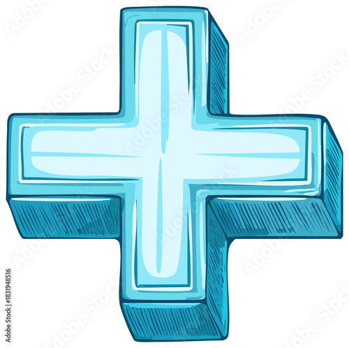 Obraz premium Shiny Blue 3D Plus Sign Vector Cartoon Illustration