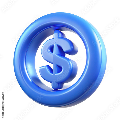 © Creative 3D Studio, Fototapeta premium Shiny blue dollar symbol inside a ring isolated on transparent background