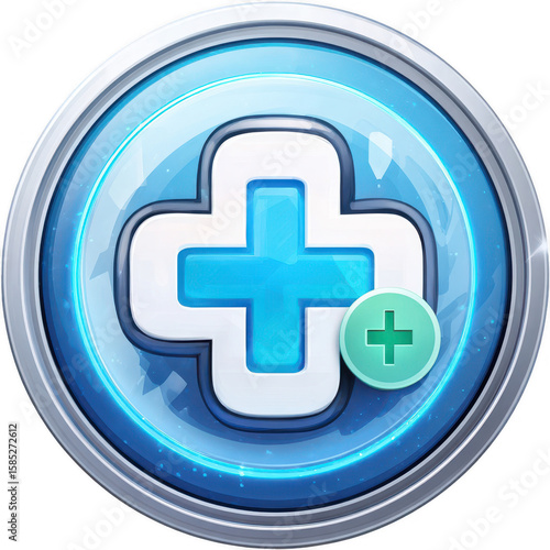 © Katsu, Obraz premium Shiny blue medical plus icon, ringed in silver