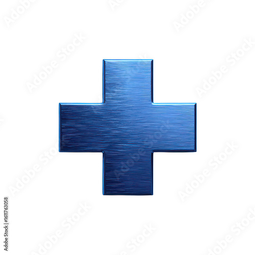 Obraz premium Shiny blue metal plus sign isolated on transparent background