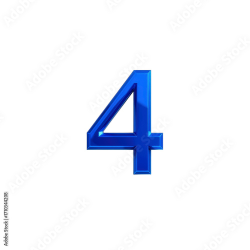 © Alex Cuong, Fototapeta premium Shiny Blue Number Four, 3D Rendered Digit on Transparent Background