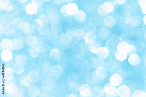 Obraz premium Shiny blurred blue background with bokeh for a festive mood. Greeting card template for fun.