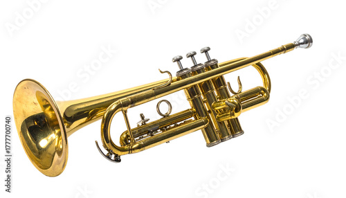 © Silly, Obraz premium Shiny brass trumpet instrument isolated on black